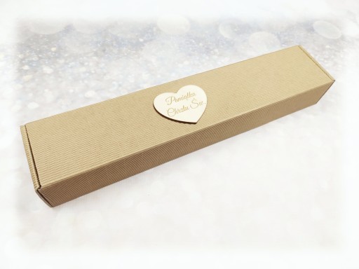 ✴️Pudełko dołączone do zestawu wykonane jest z karbowanej tektury i ozdobione grawerowanym serduszkiem z napisem "Pamiątka Chrztu Świętego".