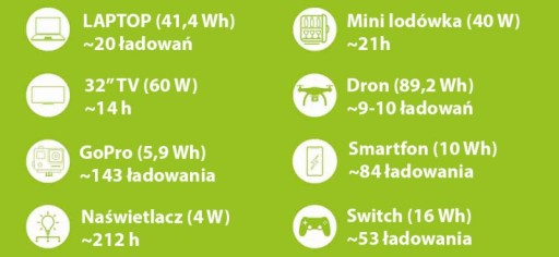 - nadaje się do ładowania laptopa, smartfonu, GoPro itp.