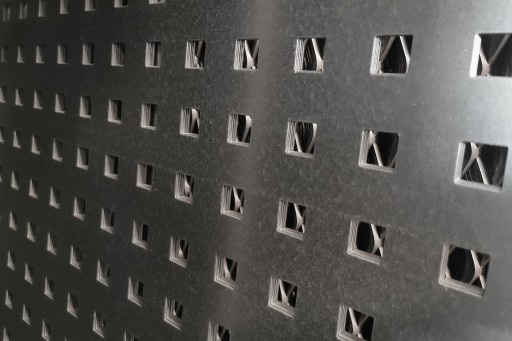 Blacha perforowana ocynkowana (ocynk ogniowy srebrny) z oczkami kwadratowymi w układzie prostym.