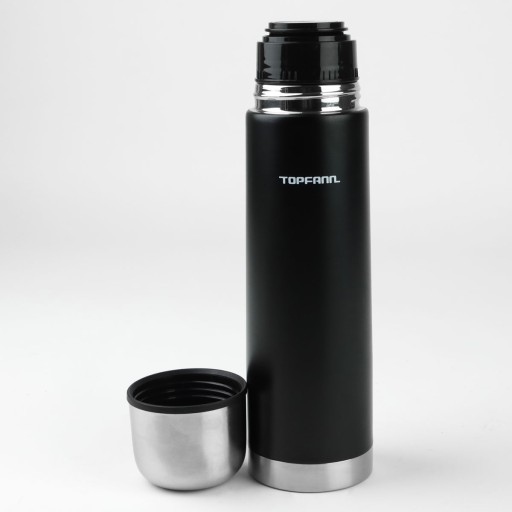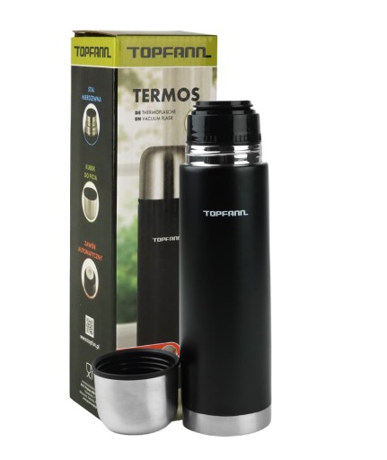 Termos Topfann wykonany został z wysokiej jakości stali nierdzewnej. Takie rozwiązanie zapewnia mu odporność na uszkodzenia i wstrząsy - już nie musisz martwić się potłuczonym podczas upadku wkładem. Temperatura napoju w jego wnętrzu utrzymywana jest za sprawą podwójnych ścianek oraz miedzianej izolacji próżniowej. Wyposażony w korek z funkcją nalewania (typu klik-klak) oraz zakrętkę mogącą pełnić rolę kubeczka. Elementy skręcane są ze sobą tworząc jedną całość. Dzięki zastosowanym uszczelkom termos nie przecieka, dlatego bez obaw możemy zabrać go ze sobą w podróż. Zadba o ciepło kawy czy herbaty przez wiele godzin, dzięki czemu możesz cieszyć się gorącym napojem gdziekolwiek zechcesz. Poradzi sobie także z utrzymaniem niskich temperatur, dzięki czemu zimne napoje, przyniosą ochłodę w upalne dni.