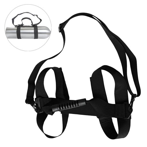 Regulowany uchwyt na butlę z butlą z paskiem na ramię