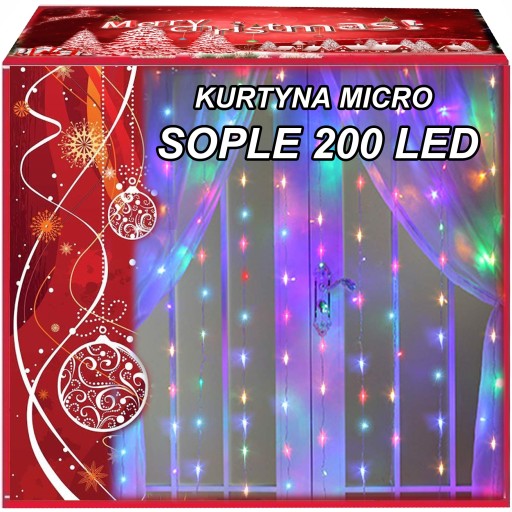 SOPLE 200Led - KURTYNA MIKRO LED 3x0,6M LAMPKI DRUCIKI