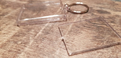 10 x Akrylowy breloczek w kształcie prostokąta, w którym można umieścić 2 zdjęcia o wymiarach 4,2x 2,5 cm.