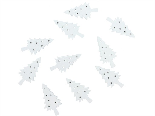 Drewniane choinki w kolorze białym, 10 sztuk.