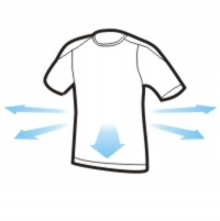 ODPROWADZANIE WILGOCI. Materiał, z którego jest wykonana odzież umożliwia szybkie odprowadzenie potu i wilgoci na zewnątrz co sprawia, że w momentach największego wysiłku fizycznego uwaga skupiona jest na dyscyplinie sportowej, a nie uczuciu dyskomfortu.