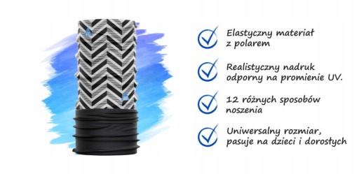 Wielofunkcyjne zastosowanie: Czapka, Chusta, Szal, Komin, Bandama, Półkominiarka, Tuba, Golf