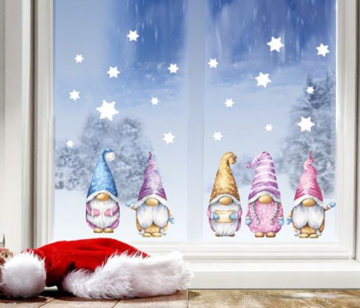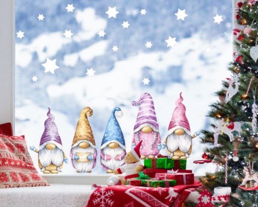 Новогодние наклейки на окна Гномы Гномы