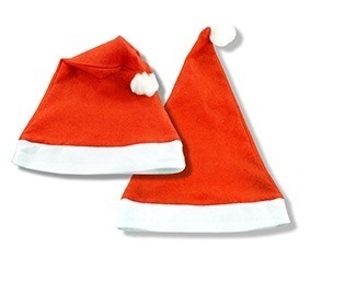 Tradycyjna czapka Świętego Mikołaja. Materiałowa, przyjemna w dotyku. Rozmiar uniwersalny. Orientacyjne wymiary - wysokość z pomponem: 37 cm, obwód: 54 cm.