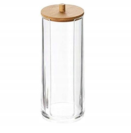 ✅ Praktyczny pojemnik do przechowywania wacików kosmetycznych został wykonany z przeźroczystego akrylu i drewna bambusowego.
