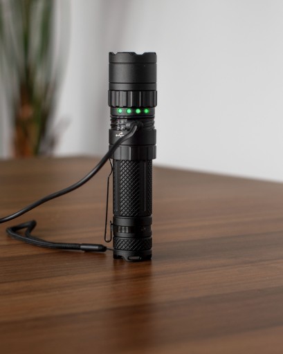 Diody wbudowane w korpus latarki sygnalizują stan naładowania akumulatora