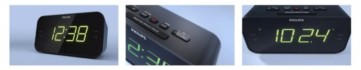Radiobudzik pozwala szybko sprawdzić godzinę. Dzięki dużym cyfrom wyświetlacz jest czytelny pod każdym kątem, a jego jasność można dostosować do pomieszczenia. Proste elementy sterujące służą do ustawiania alarmu, regulacji głośności i dostrajania stacji radiowych.