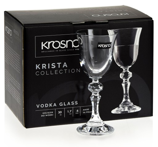 Kieliszki na nóżce do wódki Krista zostały wykonane z najwyższej jakości szkła bezołowiowego. Są całkowicie bezpieczne dla zdrowia i dopuszczone do kontaktu z żywnością - posiadają atest PZH. Korzystanie z nich jest bezpieczne i wygodne - kieliszki mają stabilną stopkę, krystaliczną przejrzystość i gładki rant. W odróżnieniu od szkła sodowo-wapiennego, nie posiada ono odcieni zieleni, żółci czy szarości. Kieliszki idealnie nadają się do serwowanie wódki czy likierów. Szkło Crystalline, dzięki swojej krystalicznej barwie i efektywnemu odbijaniu światła, wydobywa szlachetną barwę trunku - zestaw będzie stylową ozdobą zarówno nowoczesnych jak i klasycznych wnętrz. Oryginalna, bogato zdobiona nóżka nie tylko pięknie się prezentuje, ale także zapobiega ogrzewaniu alkoholu i ułatwia trzymanie. Opakowane w oryginalny karton z logo firmy KROSNO. Można myć w zmywarce.