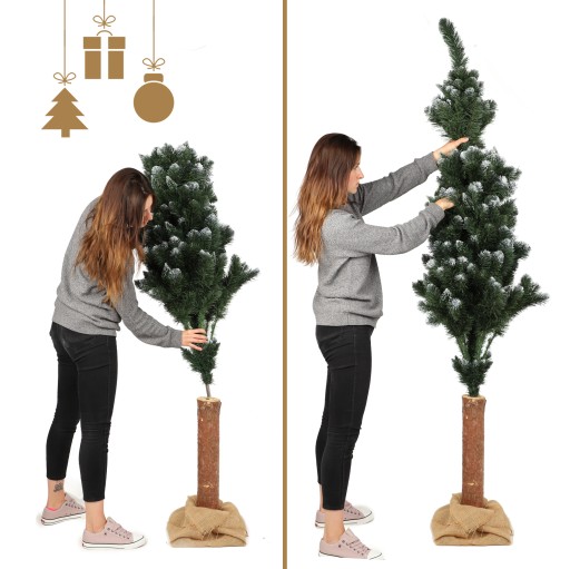 ⭐NATURALNY PIEŃ SOSNOWY – sztuczna choinka jest osadzona na podwójnie impregnowanym pniu sosnowym. Dzięki natryskowej impregnacji na długo zachowuje on niezmienny wygląd. Dodatkowo jest przyozdobiony pięknym jutowym materiałem.