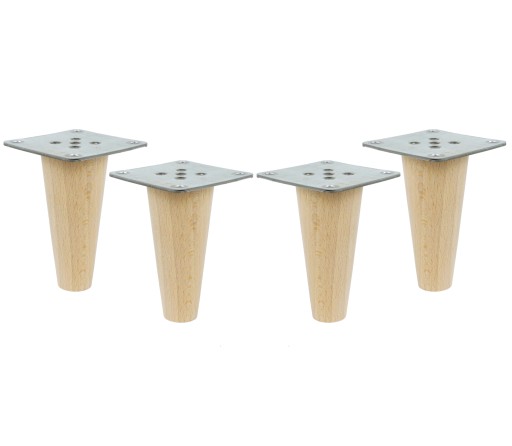 - Noga bukowa, surowa, toczona w formie stożka. Jest to nasza oferta ekonomiczna - nóżka nie posiada otworów może być mocowana bezpośrednio do mebla lub za pomocą dołączonych blach montażowych na wkręty stożkowe o rozmiarze 3,5 mm dostępne w naszej ofercie (np. Numer oferty: 12827230972).
