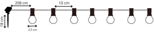 - Odległość między lampkami: 10 cm
