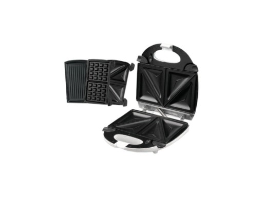 - 3 wymienne płytki (do opiekania, do gofrów i grillowe)