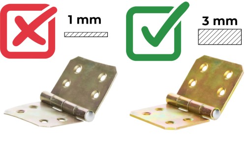 Każdy zawias wykonany został z grubej, solidnej blachy, co pozwana na uzyskanie wysokiej trwałości oraz niezawodności.