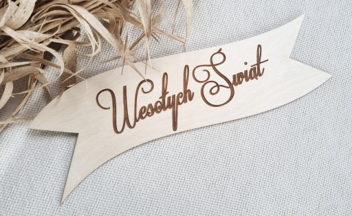 WSTĘGA DREWNIANA Z NAPISEM WESOŁYCH ŚWIĄT