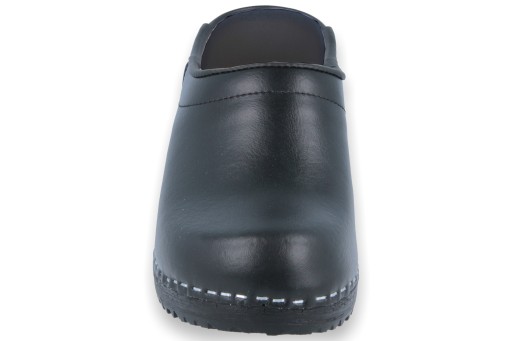 Solidne, ortopedyczne chodaki z naturalnej skóry, na spodach poliuretanowych (guma PU) z wkładką drewnianą