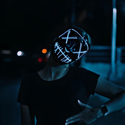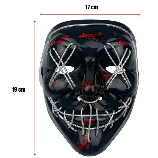 Wysokiej jakości świecąca maska o niesamowitym wyglądzie świetnie sprawdzi się podczas imprez, festiwali, halloween lub innych okazji. Idealny hit Wystarczy jedna maska i przebranie gotowe!