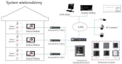Połączenie bezprzewodowe lub przewodowe wideodomofonu