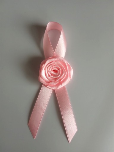 Ozdoba wykonana jest z satynowej różyczki i wstążki.