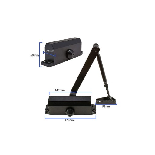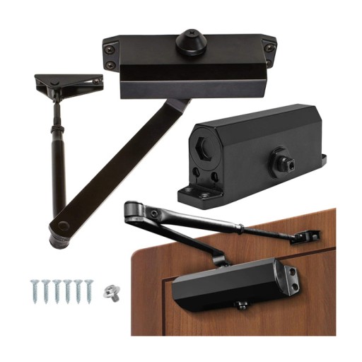 Samozamykacz można stosować do drzwi zarówno wewnętrznych jak i zewnętrznych, prawych lub lewych o maksymalnej masie do 65 kg oraz o maksymalnej szerokości 1100 mm. Produkt jest łatwy w montażu – zamocujesz go przy pomocy podstawowych narzędzi. Element został wykonany z aluminium. Dzięki temu jest wytrzymały, a materiał zapobiega odkształcaniu się ramienia samozamykacza – drzwi będą sprawnie się poruszać, nawet podczas gwałtownych ruchów. Produkt możesz wyregulować, dzięki czemu zabezpieczysz pomieszczenie przed przeciągami.