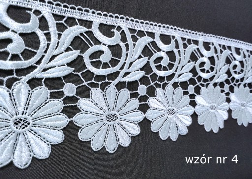 Gipiura wykonana z wysokiej jakości przędzy poliestrowej. Stanowi doskonały element dekoracyjny do wykończenia firan, obrusów oraz serwet.