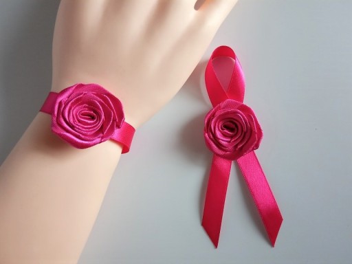 Ozdoba wykonana jest z satynowej różyczki i wstążki.