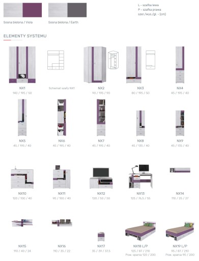 - łóżko NX 18 i NX 19- możliwość montażu na prawą i lewą stronę