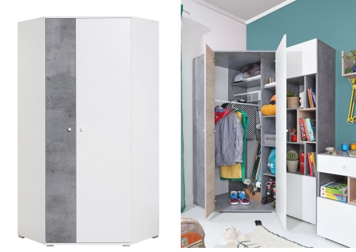 - system dostępny w dwóch wersjach kolorystycznych: biały lux+ beton oraz beton + biały lux + dąb