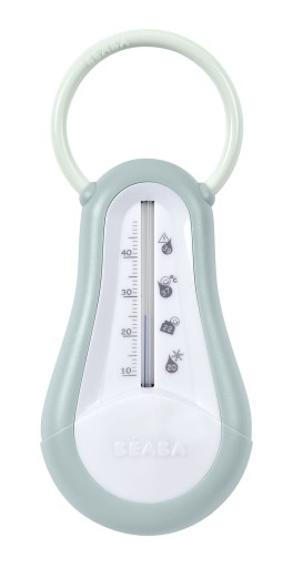Termometr francuskiej marki BEABA przeznaczony do mierzenia temperatury wody do kąpieli maluszków. Jest wyjątkowo wygodny w użyciu - unosi się na wodzie, ma wyraźną, czytelną skalę i dodatkowe oznaczenia, pozwalające natychmiast zorientować się czy temperatura wody jest optymalna dla dziecka. Jego zaokrąglony kształt sprawia, że jest całkowicie bezpieczny dla dziecka – nie ma ryzyka skaleczenia. Termometr posiada ponadto praktyczny uchwyt do zawieszania w łazience lub zamocowania w kosmetyczce maluszka.