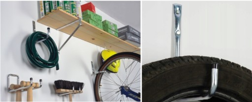 - haki z zagiętym zakończeniem, które uniemożliwi zsuwanie się zawieszonych kabli czy lekkich narzędzi