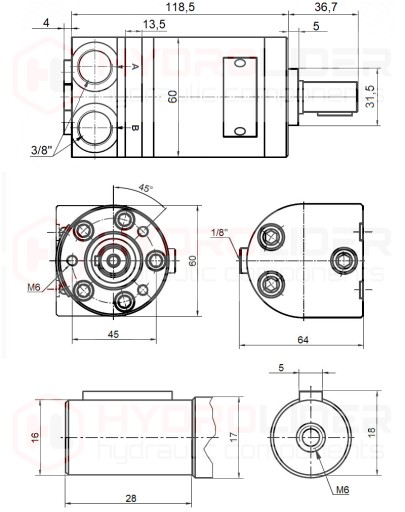 ГИДРАВЛИЧЕСКИЙ ДВИГАТЕЛЬ SMM 40 T 20L 500 об/мин ГИДРОЛИДЕР
