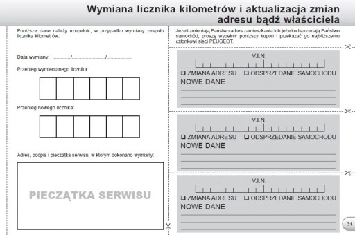 książka serwisowa gwarancyjna do wszystkich modeli Peugeota