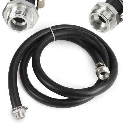 - Gruby wytrzymały wąż do paliwa z końcówkami na gwint (1") z zaciskami