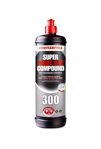Menzerna Super Heavy Cut Compound 300 1L. SHCC 300 to najbardziej tnąca pasta polesrka z oferty Menzerny. Zapewnia 101% mocy wycinania defektów polerowanej powierzchni lakieru. Skutecznie i szybko niweluje nawet głębokie defekty lakieru. Usuwa szlif o granulacji 1200.