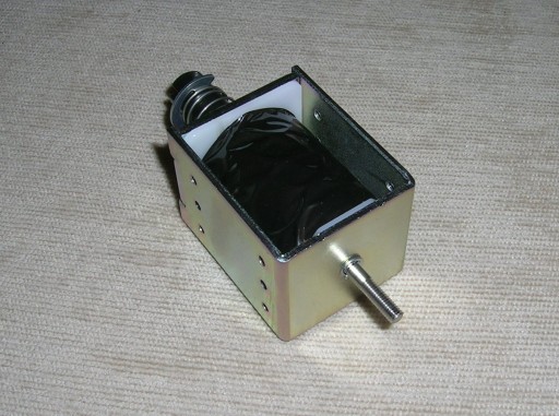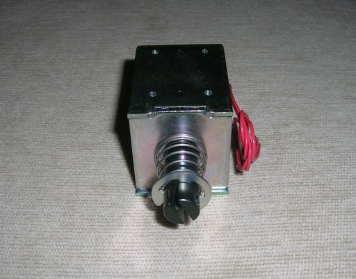elektromagnes ze sprężynką odpychającą i blokadą wysunięcia.