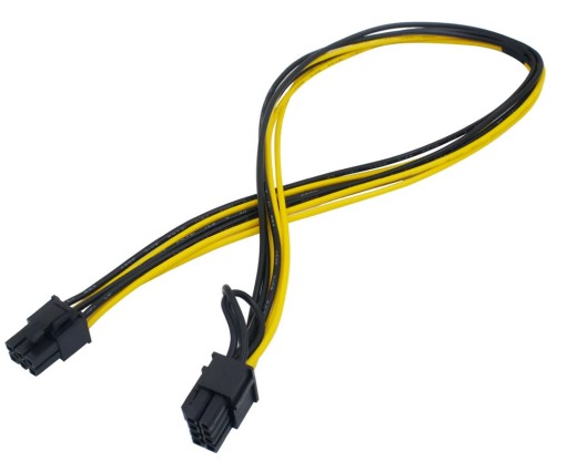 Wtyk 6+2 / 8 Pin dzięki swojej budowie można wykorzystać zarówno do 6 Pin jak i 8 Pin złącza zasilania. Układ wtyków jak na zdjęciu poniżej. Długość kabla: 50 centymetrów.