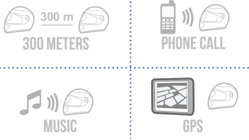 Dzięki technologii Bluetooth możesz rozmawiać z innym motocyklistą za pomocą funkcji intercomu, obsługiwać połączenia przychodzące na telefon, słuchać muzyki oraz otrzymywać polecenia nawigacji