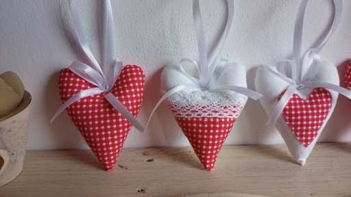 Dekoracyjne serca - zawieszki z bawełny.