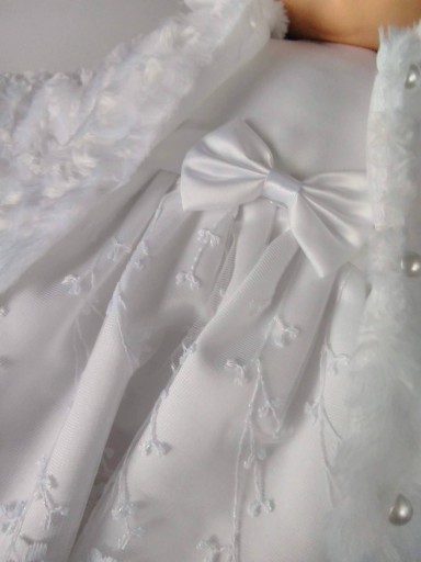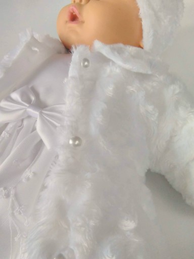 KOMPLET DO CHRZTU BŁYSKOTKA, Sukienka, PŁASZCZ FUERTKO, czapeczka futerko rozmiar 74