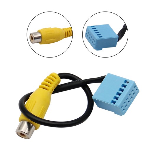 Instrukcje okablowania: niebieskie złącze jest podłączone do gniazda widoku z tyłu z tyłu hosta, a żółte gniazdo jest podłączone do wejścia sygnału kamery