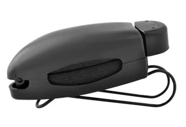 Mocowany do osłony przeciwsłonecznej samochodu lub innej płaskiej powierzchni.