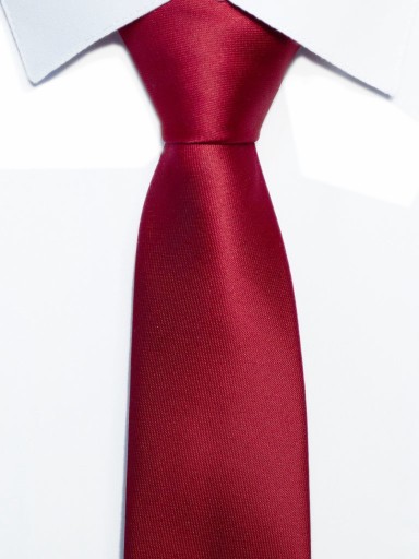 Klasyczny krawat męski w kolorze czerwonym. Materiał satynowy, półmatowy, tkanina dobrze układa się na węźle. Szerokość w czubie 7 cm.