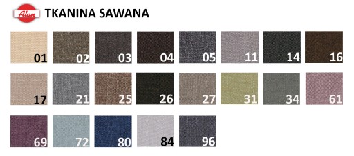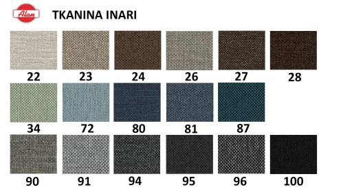 Przedstawiony mebel wraz z poduszkami możemy wyprodukować w tkaninie INARI, SAWANA, MONOLITH, SPARK, VOUGE (ZA DOPŁATĄ) I FORIO (ZA DOPŁATĄ)