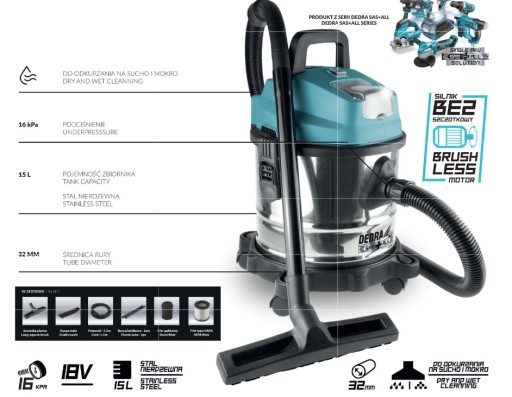Odkurzacz akumulatorowy bezszczotkowy SAS+ DED7175