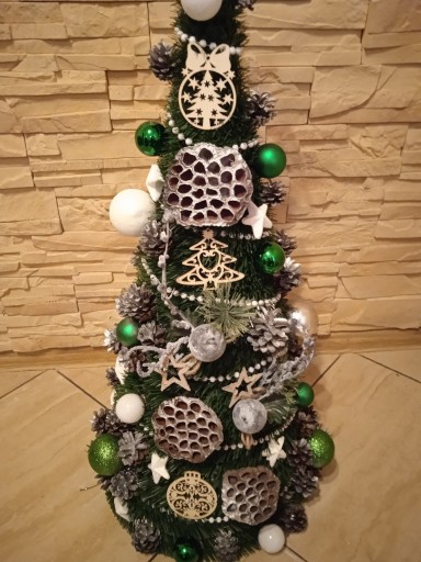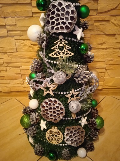 Ozdoby są poprzyklejane klejem na gorąco na stałe. CHOINKA JEST GOTOWA!!!!
