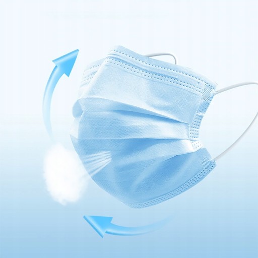 Maseczka trójwarstwowa, włóknikowa, z gumkami wykonana z niepylącej i hipoalergicznej włókniny PP. Zabezpiecza przed zakażeniami przenoszonymi drogą kropelkową, chroni przed różnego rodzaju zanieczyszczeniami. Zapewnia swobodne oddychanie, filtracja 99,9%. Posiada wkładkę modelującą na nos, co umożliwia swobodę ruchu twarzy podczas mówienia.