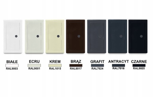 Możemy dostarczyć drzwiczki w dowolnym kolorze z palety RAL. Dzięki temu będą pasowały do wnętrza lub koloru elewacji. Czas realizacji wynosi około 14 dni roboczych. Realizacja takiego zamówienia jedynie po przedpłacie.